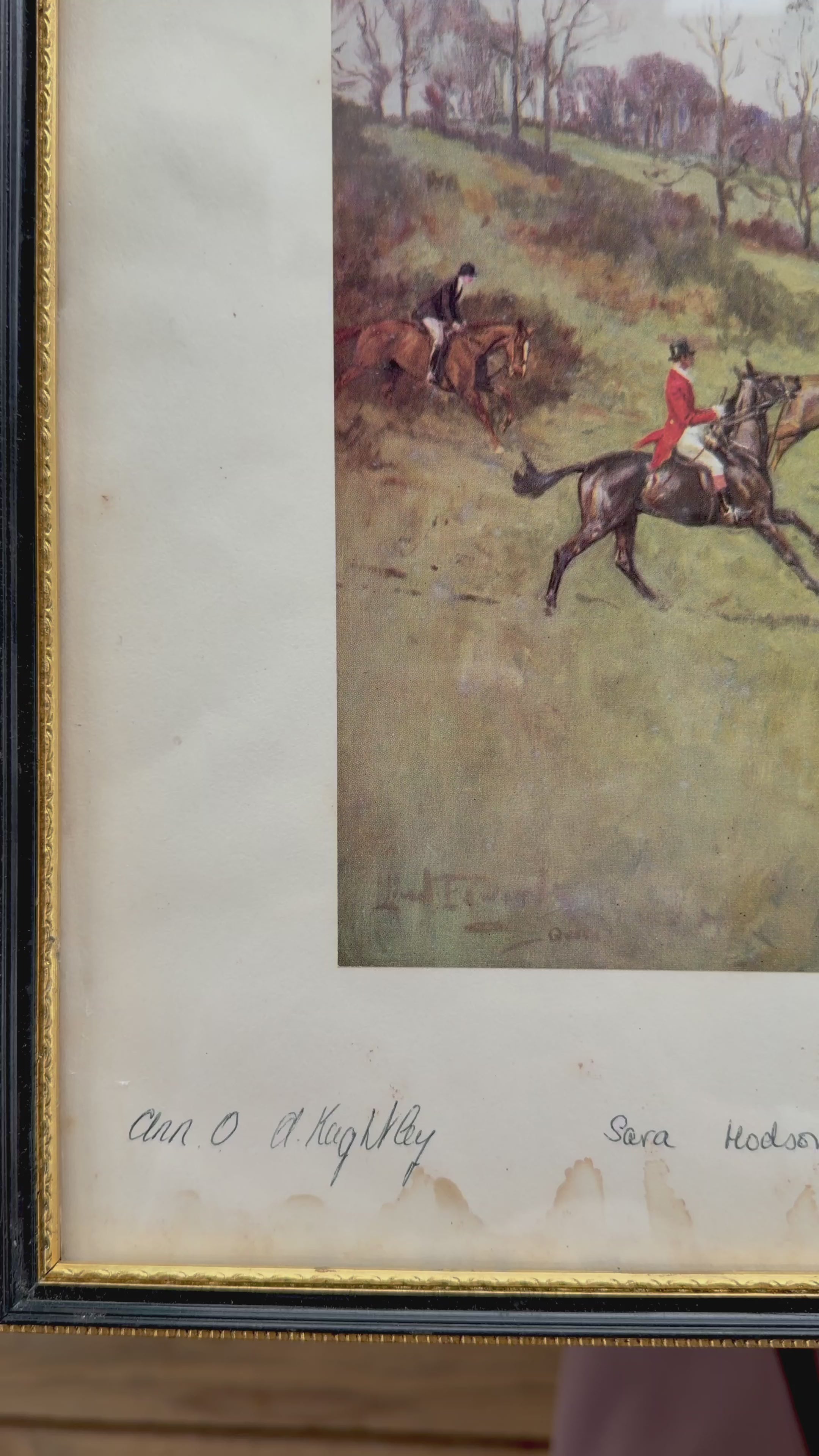 Set of 4 Hunt Scenes Meet to Finish in Single Oak Frame- English