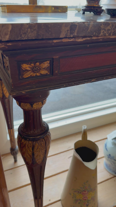 Antique Italian Console from Sicily, 1700s Beautiful Gold Detailing and Grey/white Marble Top
