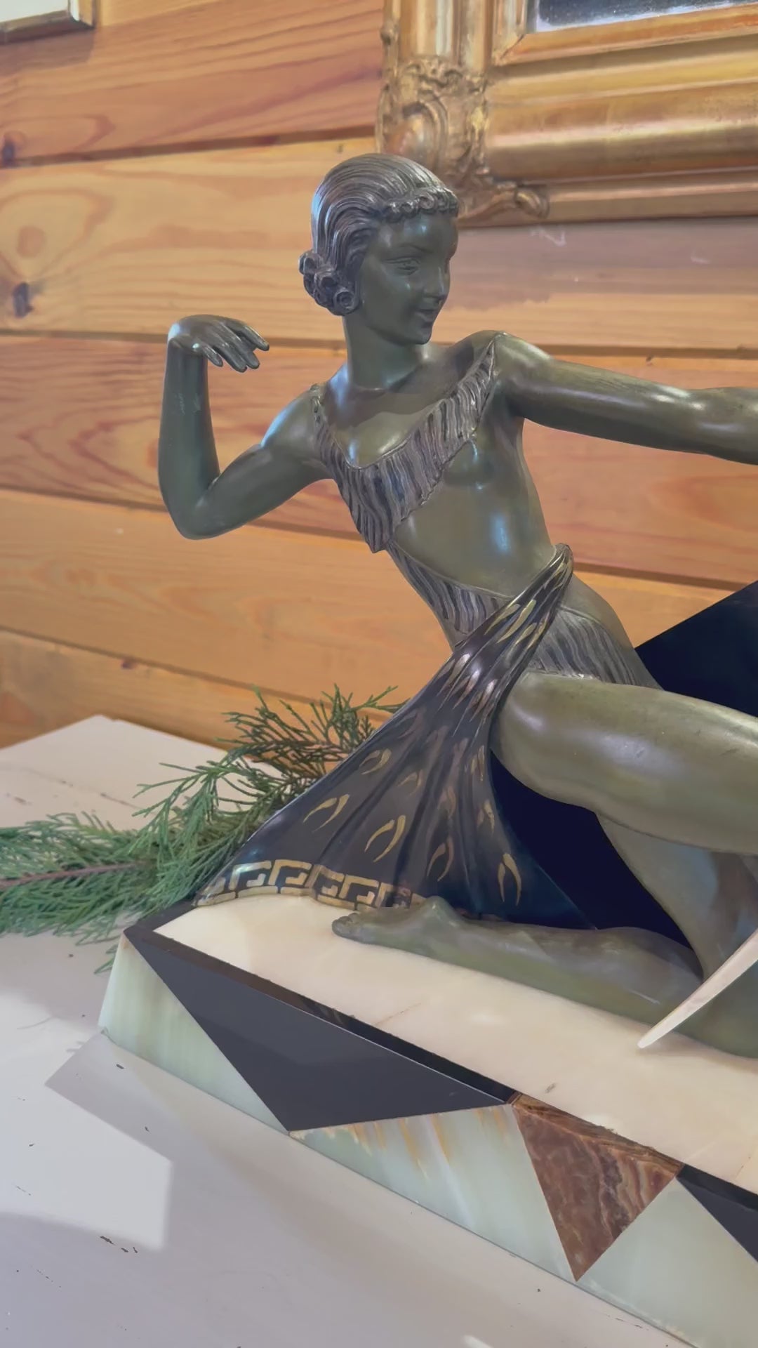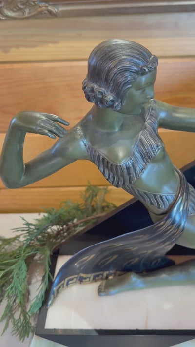 A striking timepiece -- This French Art Deco clock showcases lustrous bronze detailing and refined marble construction, and an elegant archer. A sophisticated accent for collectors who appreciate mid-century design and timeless craftsmanship.