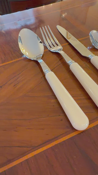 More than just utensils, Sabre Paris cutlery is designed as decorative objects. Assembled by hand with the highest quality at every stage of production in their workshop near Paris. Dishwasher safe at 113°F (45°C) maximum. Remember to open the dishwasher at the end of the cycle. When washing by hand, we recommend that you do not use abrasive sponges. For cutlery with light-colored handles, avoid prolonged contact with foods that stain (coffee, tea, tomato sauce, etc.).