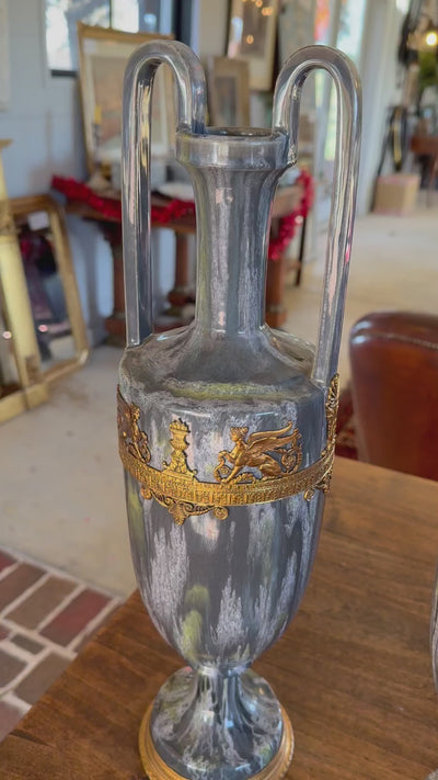 Pair of French Empire Ceramic and Bronze Vases